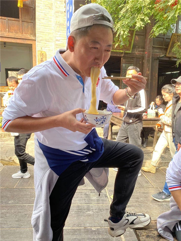 吃饱了,喝涨咧,咱跟皇上一样咧!