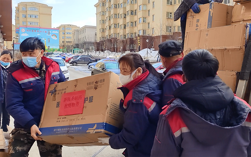 新医圣制药与鸡东县政府办公室物资接收人员合影